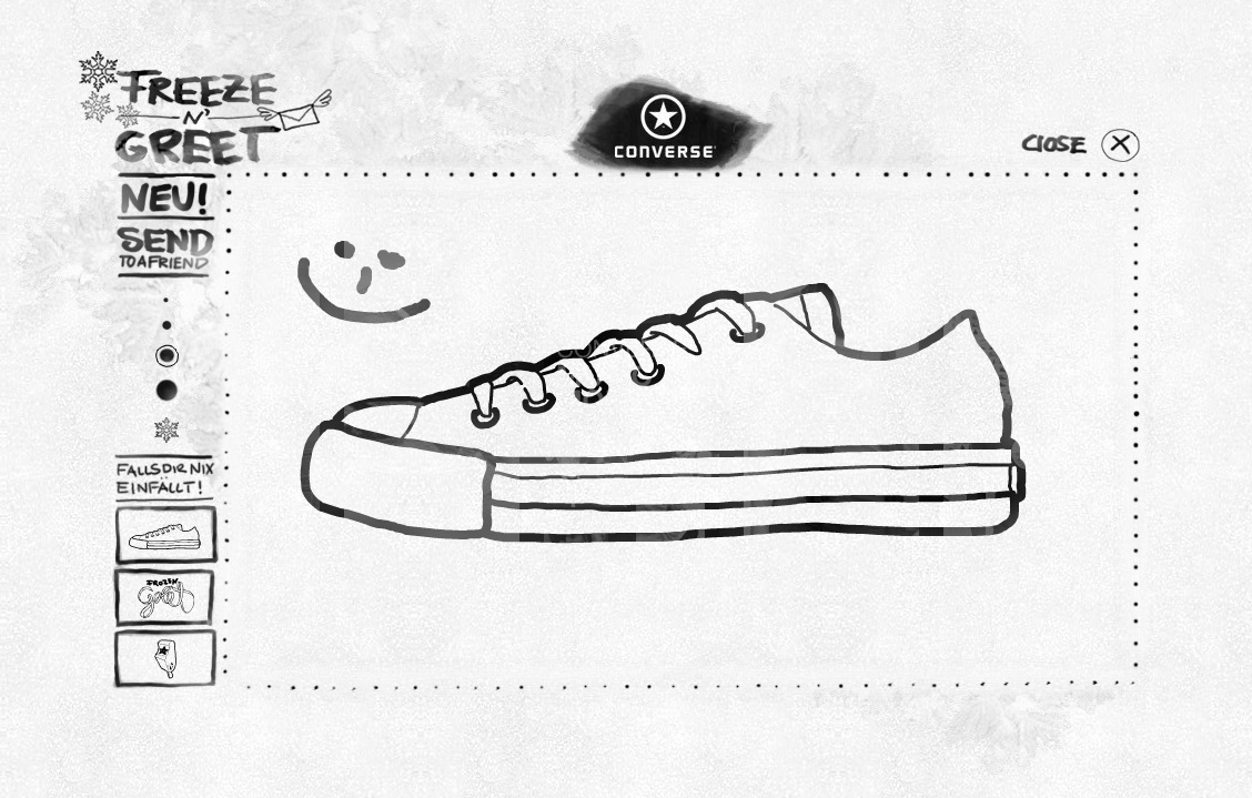 Seit einigen Tagen muss ich morgens die Scheiben meines Autos frei kratzen. Natürlich könnte man auch lustige Motive oder Sprüche in das Eis kratzen, allerdings wäre das aus fahrtechnischer Sicht natürlich nicht das Nonplusultra. Das haben wir natürlich bei unserem aktuellen Projekt auf www.converse.de auch berücksichtigt. Deshalb gibt es dort keine echten vereisten Scheiben sondern virtuelle. In diese könnt ihr euren Freunden dann eine Nachricht kratzen und per E-Mail verschicken.