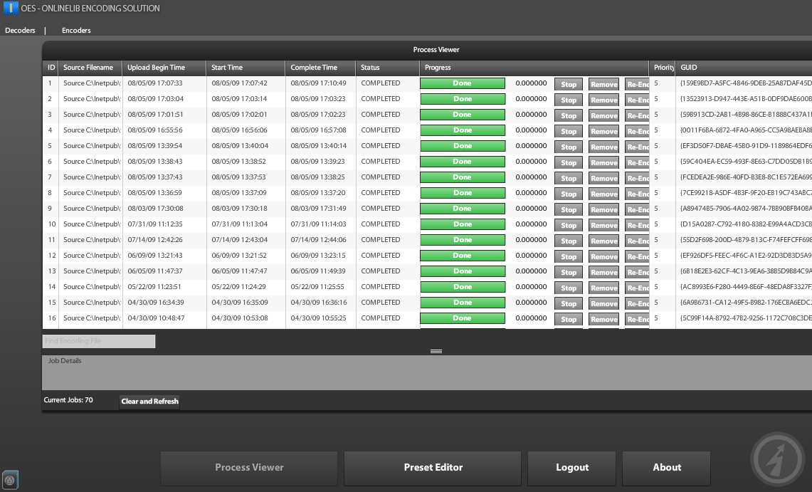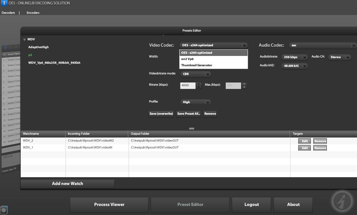 Was wird dieser neue Codec kosten? Gar nichts! Entwickelt wurde das Paket mit viel Open Source von unserem Kooperationspartner Onlinelib. Den Sourcecode liefert Onlinelib neben zahlreichen Whitepapers gerne auf Anfragen auf CDs zum Selbstkostenpreis aus. Hier noch einmal zwei Screenshots, einmal der Task Manager und dann das GUI Interface “OES – x264 optimized”: